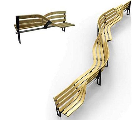 è il caso di questa panchina che dispone di posti a sedere dove nonostante si è affiancati si guarda in punti opposti, guardando l’immagine della panchina due posti si comprende immediatamente la disposizione dei posti, meno chiara ma sicuramente più di impatto quella con un grande numero di posti, questa soluzione probabilmente è più adatta per un arredo pubblico.
